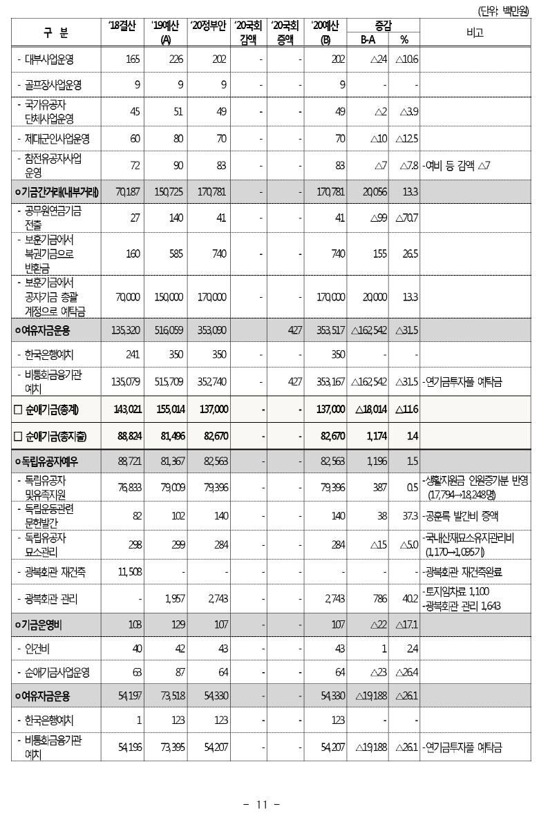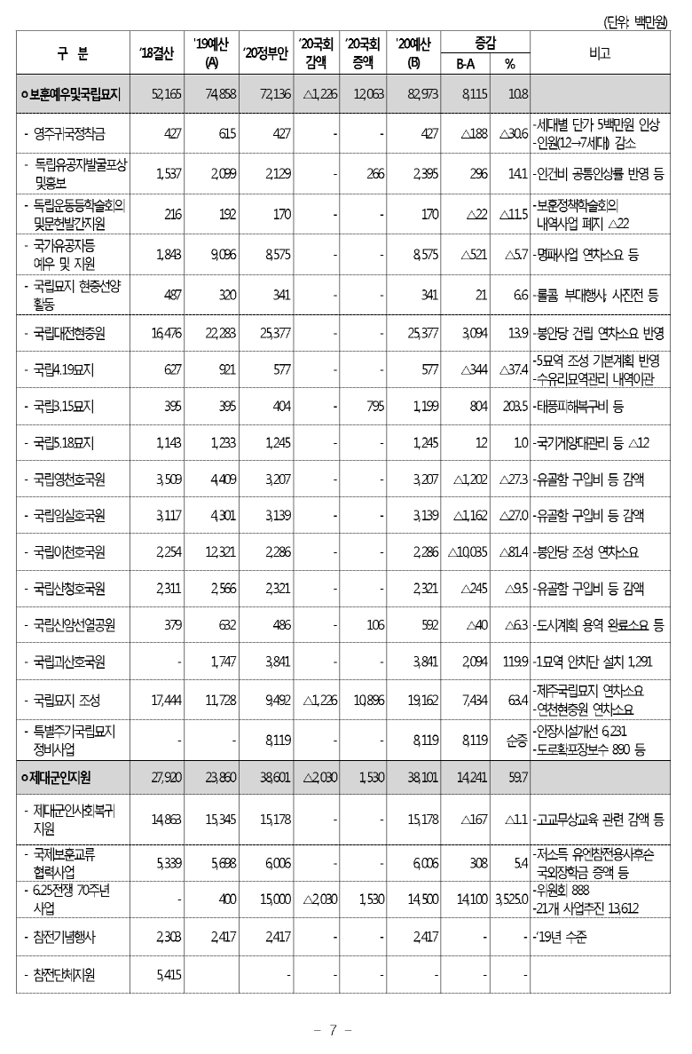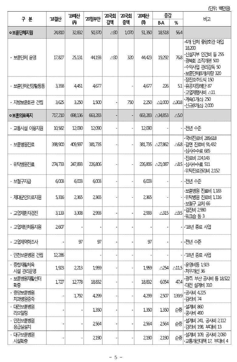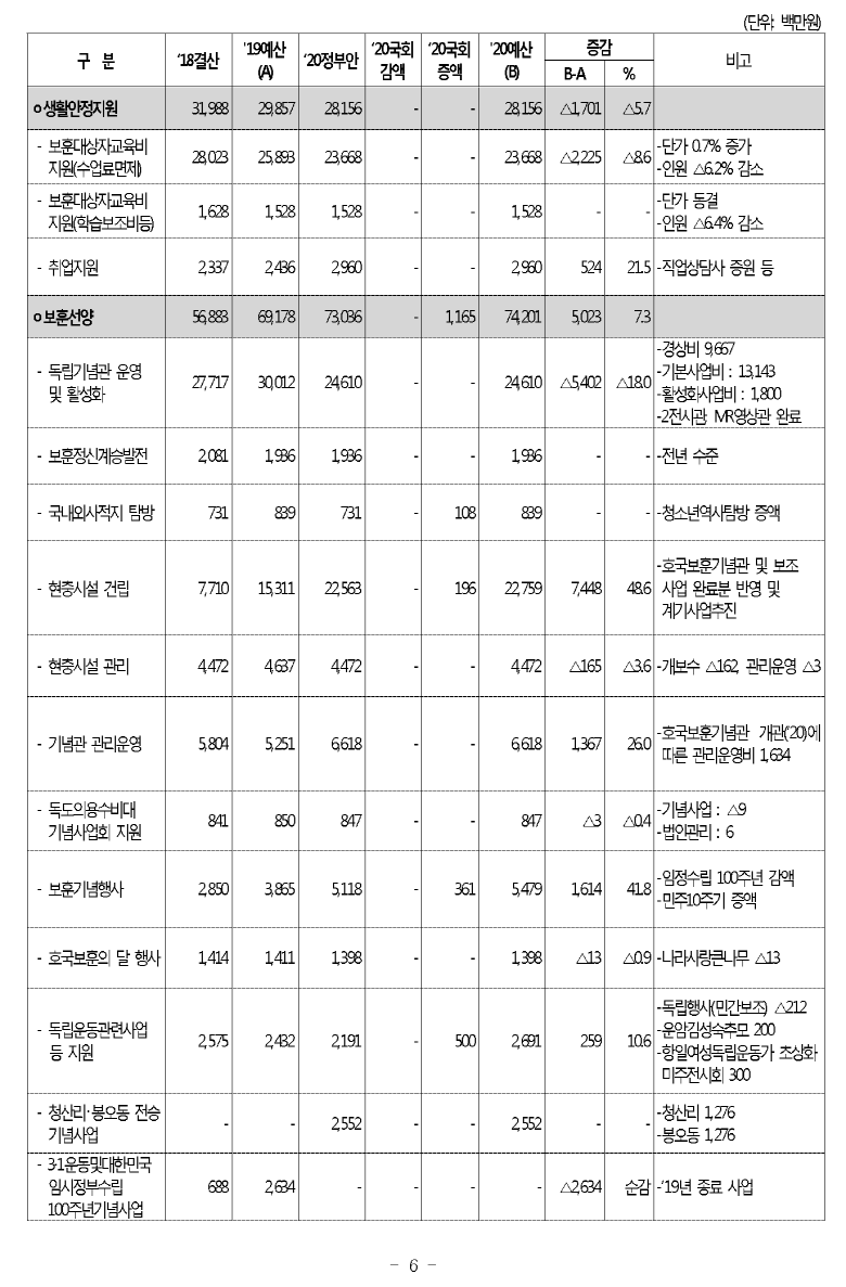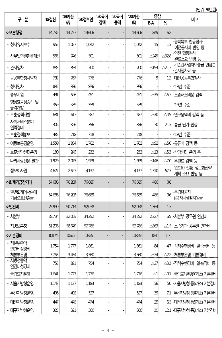 [현황] 2020년도 보훈예산 편성 현황 (보훈급여금,보훈보상금,보훈연금등)