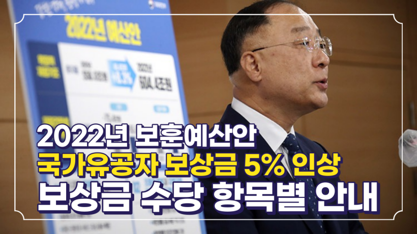 2022년 보훈예산안 정부안 발표. 보훈보상금 5% 인상안. 참전명예수당등 항목별 세부내역 안내