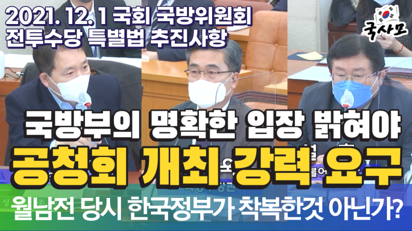 월남전 참전자 전투수당 지급 특별법, 전투를 했는데 지급하지 않았다?, 공청회 개최 강력 요구, 혹시 다른 항목으로 당시 한국정부가 착복한것 아닌가? 국방부의 명확한 입장 밝혀야, 2021.12.01 국회 국방위원회
