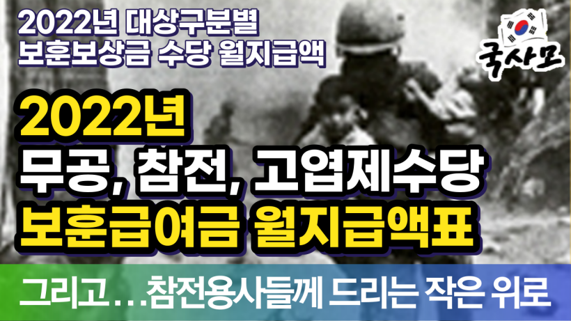 2022년 보훈예산,2022년 국가유공자 보훈급여금 보훈보상금 보훈연금 인상,국가유공자,보훈대상자,참전유공자,참전명예수당,무공영예수당,2022년 보훈보상금,2022년 보훈연금,2022년 국가유공자연금,국가보훈대상자,상이군경,보훈,공상군경,보훈혜택,참전용사혜택,국가유공상이자,전상수당,참전유공자수당,참전명예수당,간호수당,생활조정수당,6․25자녀수당,고령수당,무공명예수당,고엽제수당,유족연금,보훈보상대상자,부양가족수당,중상이부가수당,국가유공자연금표,전물유족,625유자녀수당,고엽제수당,참전유공자,유족보상금