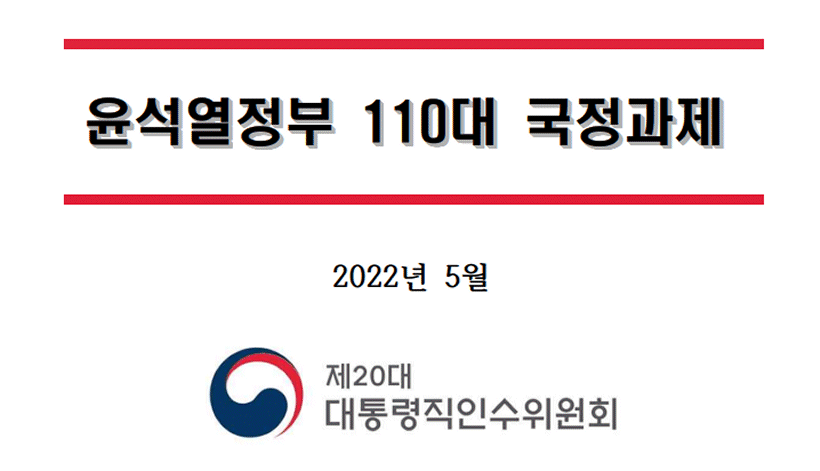 대통령직인수위원회는 5월 3일 오전, 윤석열 정부의 110대 국정과제를 발표하였습니다.