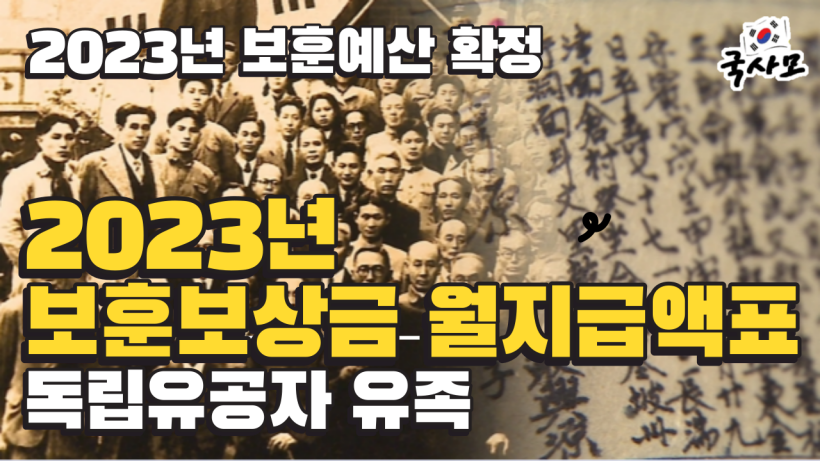 공지사항 : 본 자료는 링크공유만 가능하며 자료의 외부 무단전재 및 무단사용은 허용하지 않습니다. 2023년도 보훈급여금 월지급액은 2022년 12월 24일 국회 예산안 통과에 따른 자료로서 일부항