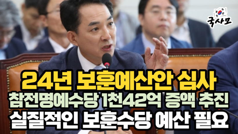 민주당 조응천 의원은 “부산에서 참전용사가 참전수당 35만원, 시로부터 10만원 받아서 총 45만원으로 살다가 슈퍼에서 참기름을 절도한 사건이 있었다”며 “생활고로 고통받는 국가유공자가 다시는 발생하지 않도록 각종 수당 예산을 현실적으로 증액하는 게 더 급하다는 것이 민주당 입장이다”고 강조했습니다.