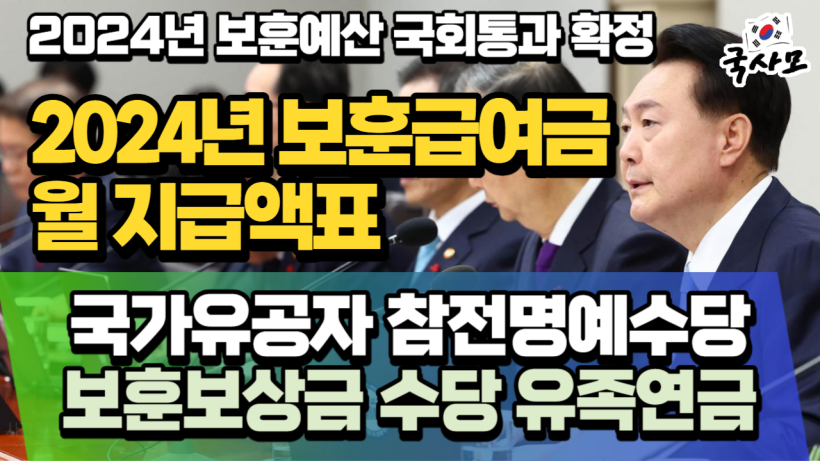2024년 보훈예산,2024년 국가유공자 보훈급여금 보훈보상금 보훈연금 인상,국가보훈처,국가유공자,보훈대상자,참전유공자,참전명예수당,무공영예수당,2024년 보훈보상금,2024년 보훈연금,2024년 국가유공자연금,국가보훈대상자,상이군경,보훈,공상군경,보훈혜택,참전용사혜택,국가유공상이자,전상수당,참전유공자수당,참전명예수당,간호수당,생활조정수당,6․25자녀수당,고령수당,무공명예수당,고엽제수당,유족연금,보훈보상대상자,부양가족수당,중상이부가수당,국가유공자연금표,전물유족,625유자녀수당,고엽제수당,참전유공자,유족보상금